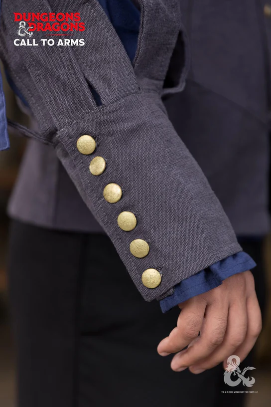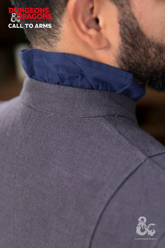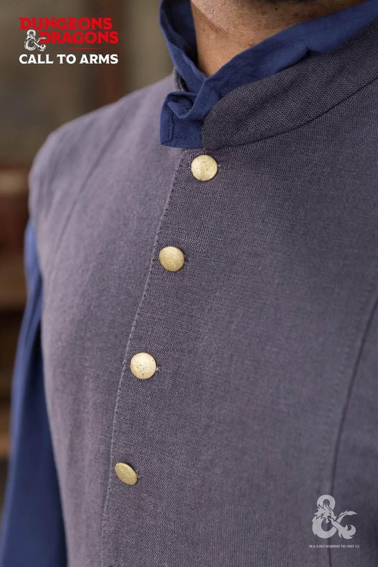 Elevate your stage presence and charisma with our D&D Bard Jerkin, designed to reflect the artistry and charm of a bard. This jerkin features a vibrant stand-up collar, perfect for captivating audiences during live performances. The slitted sleeves add a touch of dramatic flair, allowing gestures to flow freely while weaving enchanting tales. Additionally, the long cuffs with buttons provide a touch of sophistication and enable easy adjustments.
