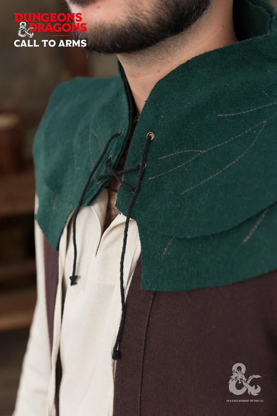 The D&D Druid Pelerine embodies the harmony between druidic magic and the wilderness. This vest features a wool pelerine in a leaf shape, evoking the imagery of ancient forests and natural splendor. The lacing at the center front not only adds a touch of authenticity but also allows for a secure and customizable fit. Decorative leaf stitchings enhance the pelerine’s natural appeal, making it the perfect finishing touch for a druid’s attire.