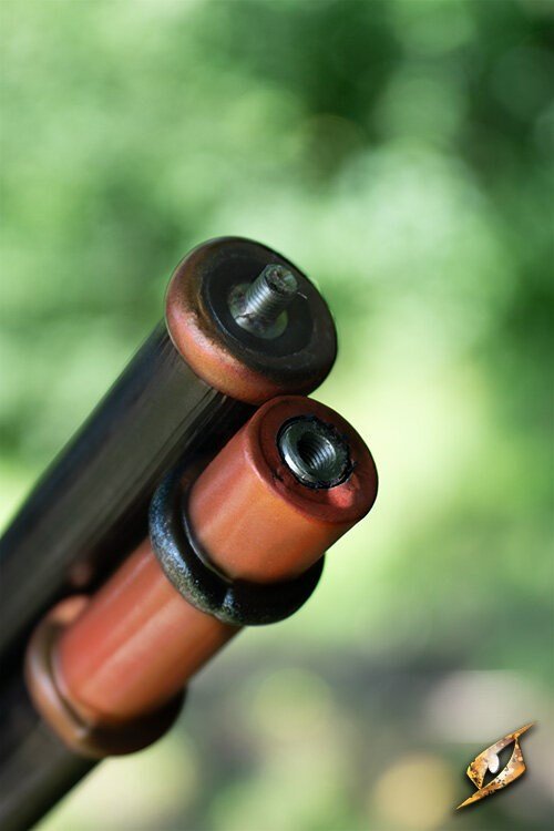 The Serrated War Spear is a Compact Weapon and comes in two parts that screw together securely, making it easy to transport and store.